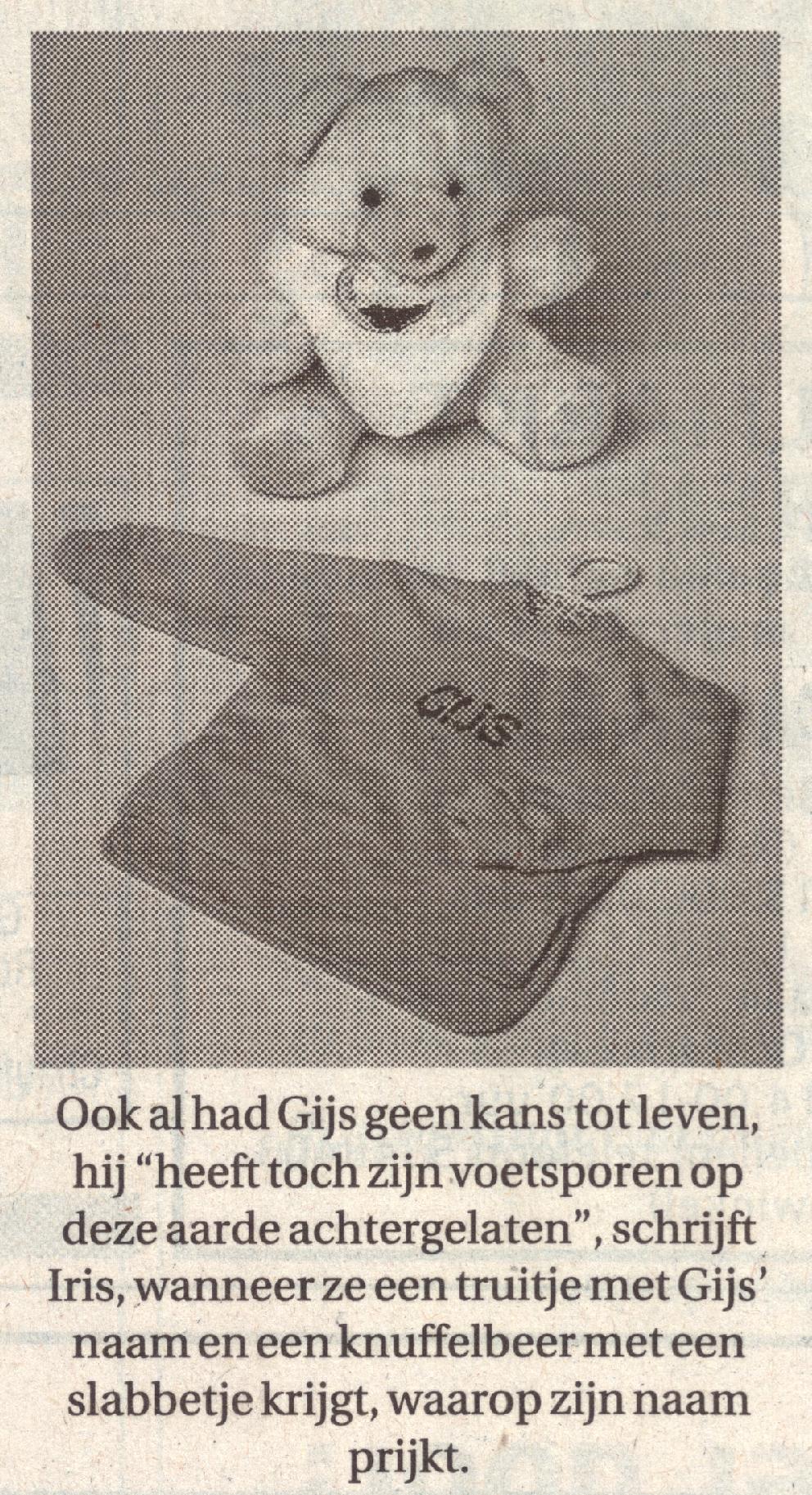 hebben gekregen mee tot steun kan zijn." Voor het boekje over Gijs is